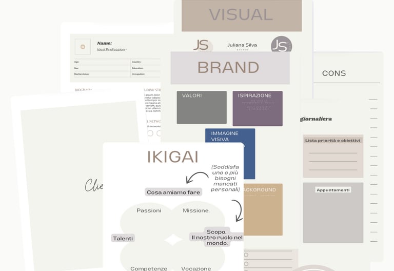 Un set di schede di lavoro personalizzate, creati appositamente per te dopo la consulenza — materiali che potrai continuare a utilizzare, aggiornare e far evolvere nel tempo.