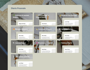 Non sono semplici strumenti di organizzazione: sono spazi in cui puoi ritrovarti, darti valore e costruire una relazione più gentile con te stessə. Dai planner annuali ai journal quotidiani, fino ai supporti per il benessere alimentare ed emotivo, ogni prodotto è progettato per ispirarti e accompagnarti nel tuo percorso, con delicatezza e presenza.
