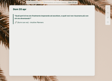 Dietro ogni prodotto Intuitive Planners c’è un’intenzione precisa: aiutarti a vivere con più consapevolezza, equilibrio e autenticità. Ogni agenda, journal o planner nasce da un lavoro attento e appassionato, con un design essenziale e curato nei minimi dettagli, pensato per sostenerti davvero – ogni giorno, nei tuoi ritmi reali.